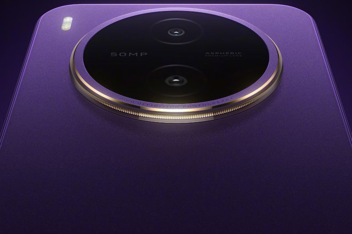 Тизер новинки раскрыл дизайн: фиолетовый корпус, круглый блок камер и золотые элементы.