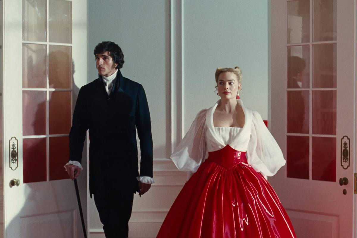 Со временем стихийные порывы уступают место выбору в пользу комфорта и статуса. Повзрослевшая Кэтрин (Марго Робби) больше не бегает по лужам. Она примеряет идеальные локоны и безупречные корсеты, которые выглядят чужеродно на фоне обветшалых стен. В её кукольном облике и дорогих нарядах читается желание отгородиться от того хаоса, который когда-то был её смыслом. Вместо психологической драмы возникает почти карикатурный образ: героиня страдает в интерьерах, напоминающих павильоны золотого века Голливуда, а не суровое поместье XVIII века.