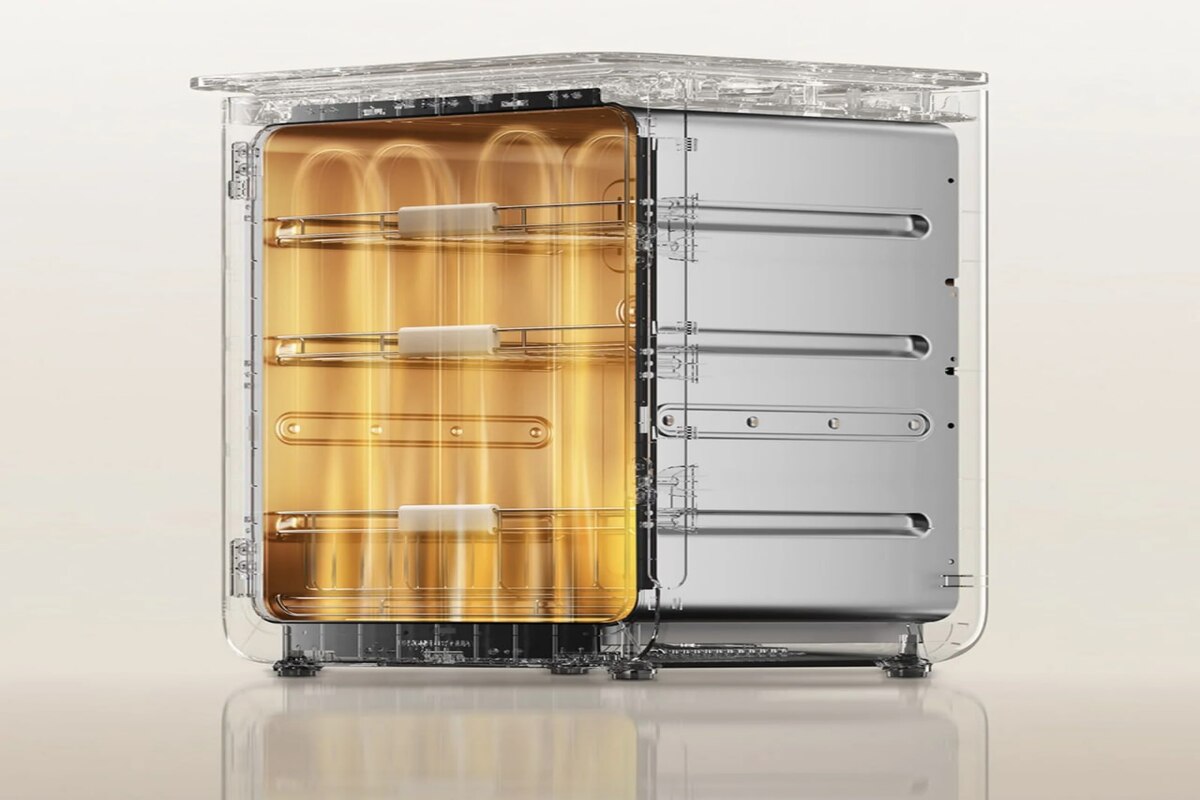 Прибор использует трёхэтапную систему очистки: ультрафиолетовые лампы, сушку при температуре до 75°C и ионизацию воздуха. Внутренний резервуар из пищевой нержавеющей стали оборудован выдвижными полками.